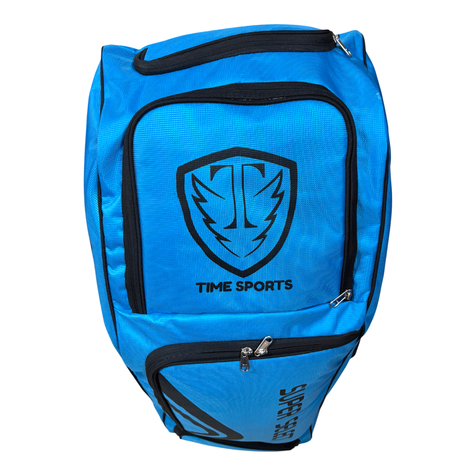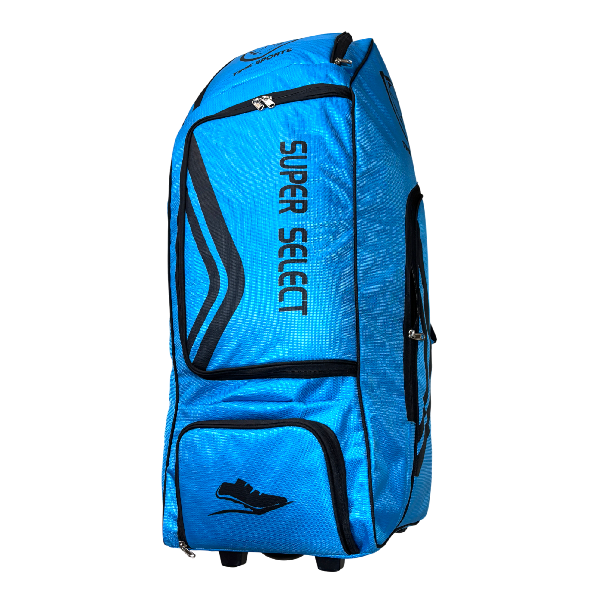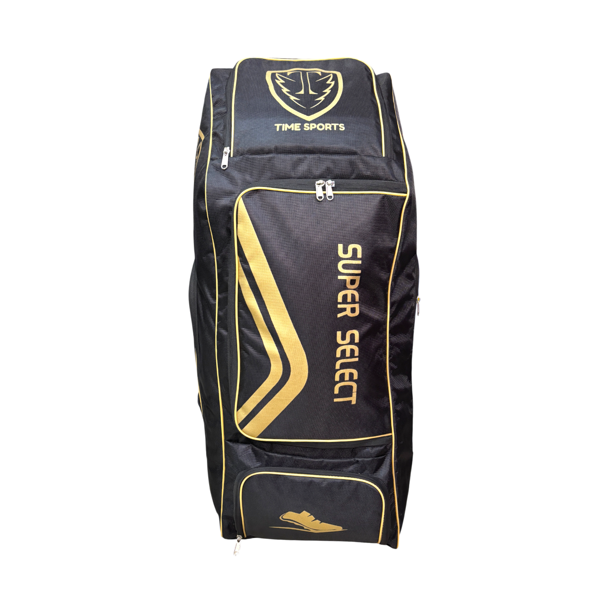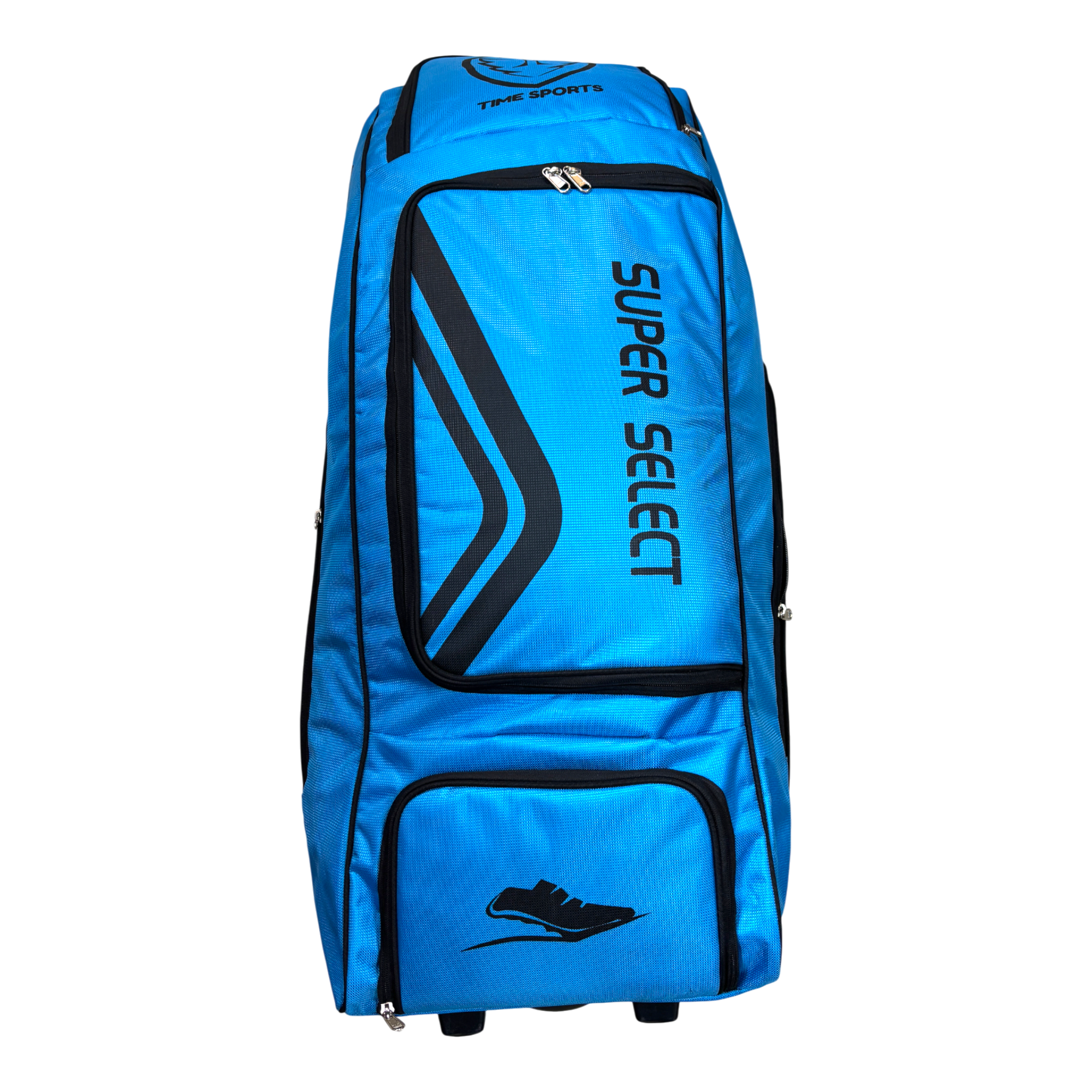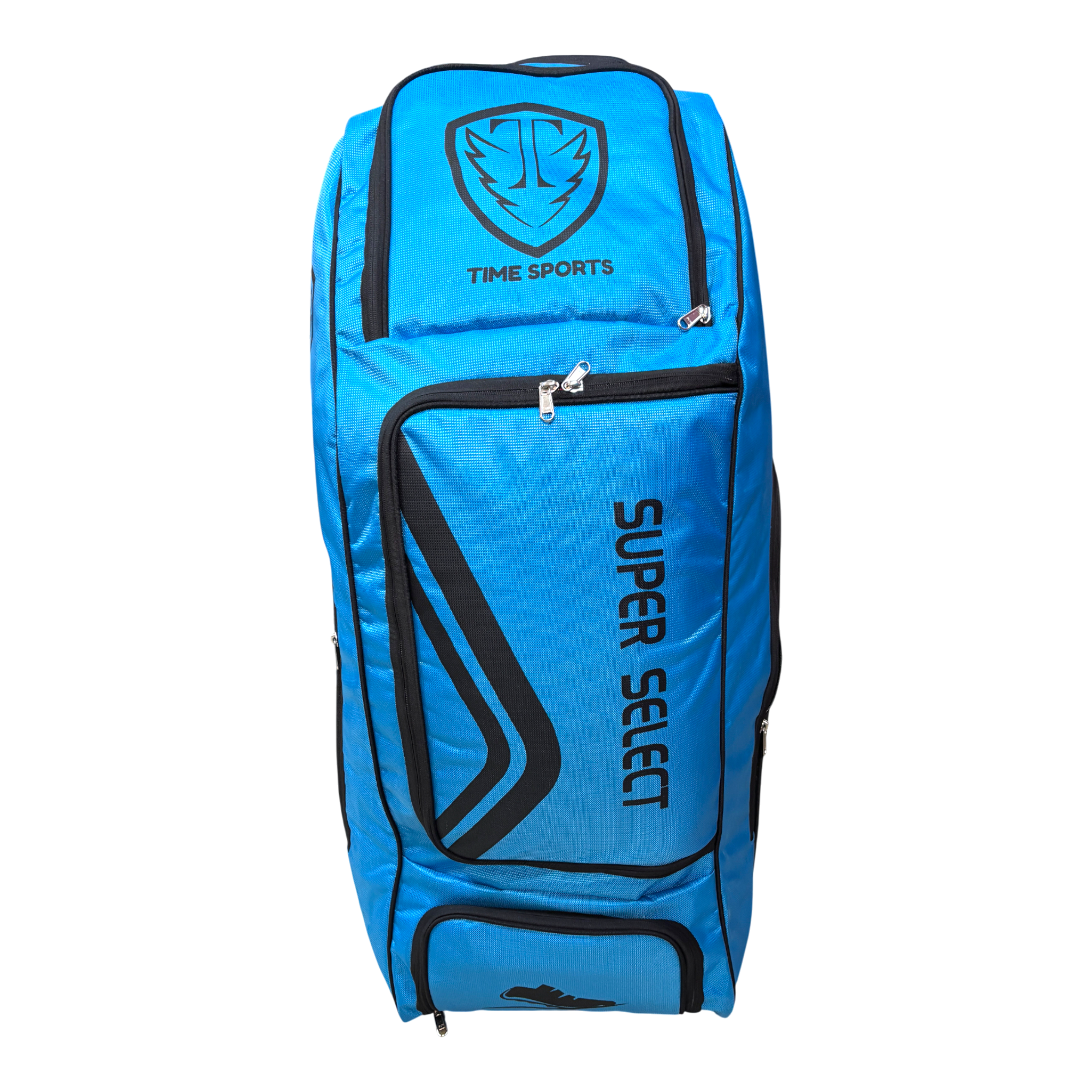 Time Sports Super Select Cricket Kit Bag with Wheels, Large 110L Duffle Style Equipment Bag, Heavy-Duty Zippers, Helmet Pocket, Side Pockets, Built-in Powerbank Support