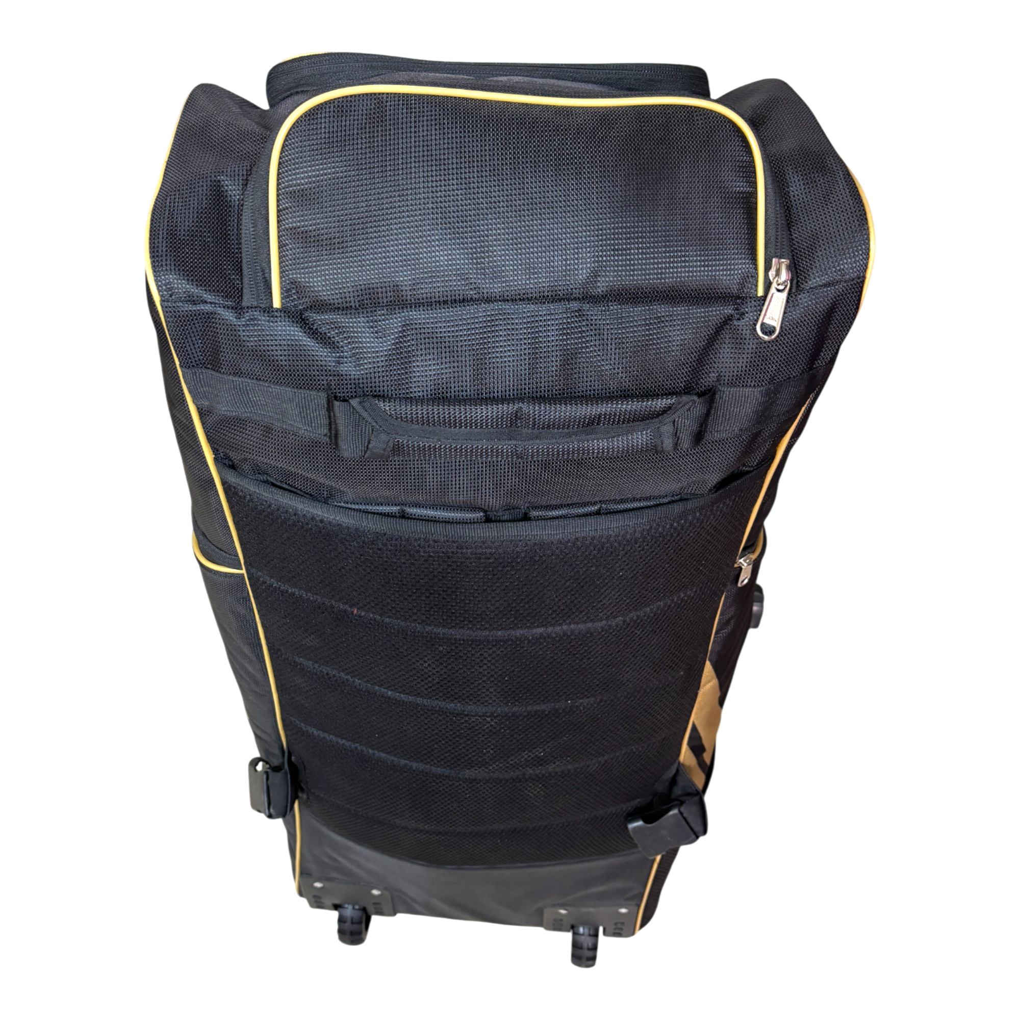 Internal mesh organisers: Clear, zip-close mesh sections inside the main chamber for small items like anti-scuff sheets, counterweights, and spare laces.
